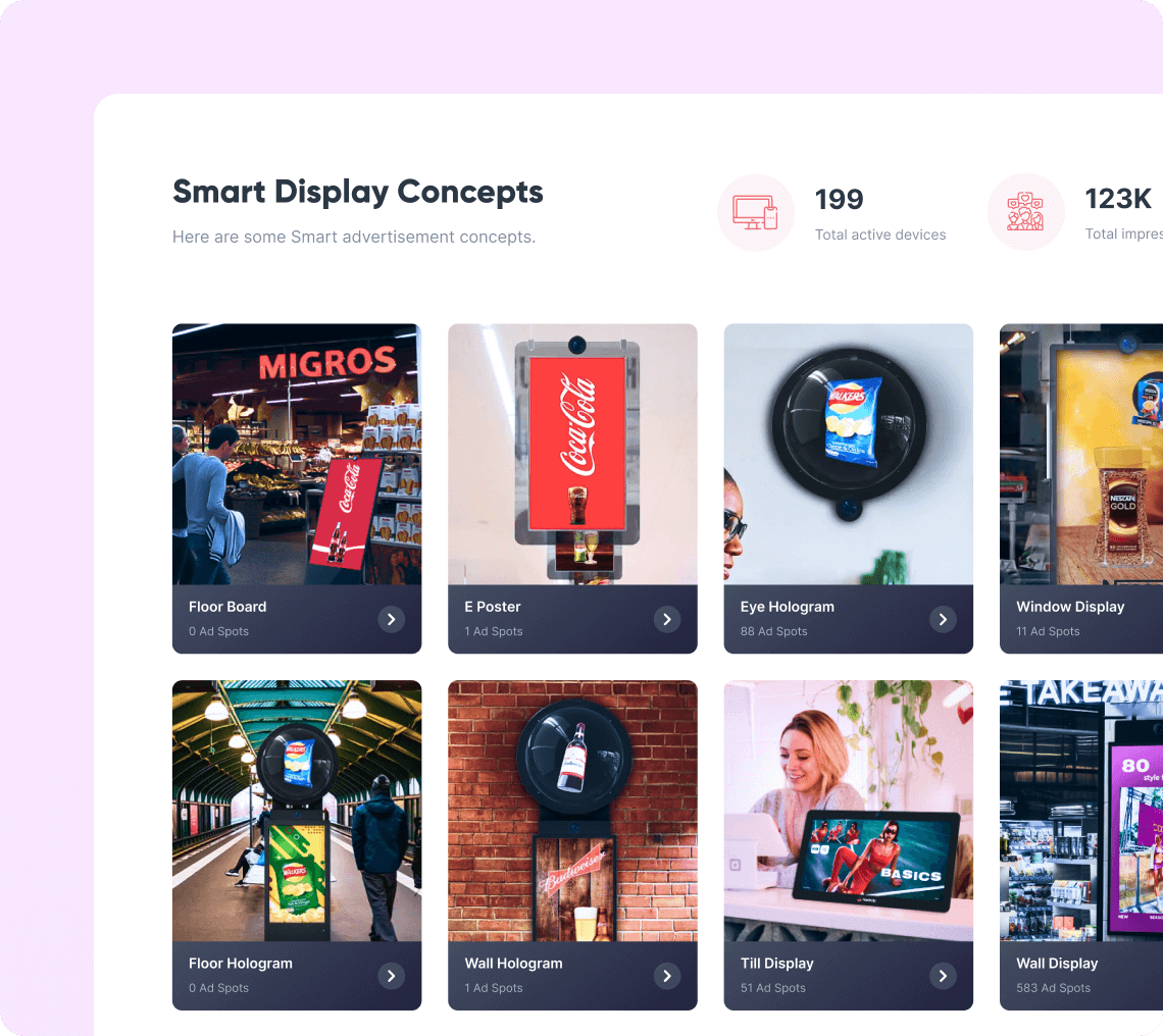 HadsUp hardware and Software production team designs and manufactures different types of Advertising Display Screens and integrates with its developed software in each of these screens. HadsUp teams combine them with the latest technology display features with unique AI technology on each of them. At the end of the process, each product becomes a HadsUp Display Concept. Then, HadsUp installation and maintenance team arranges the out-of-home locations to set up the Display Concepts. After all these processes, each display concept becomes a HadsUp Ad Spot.
